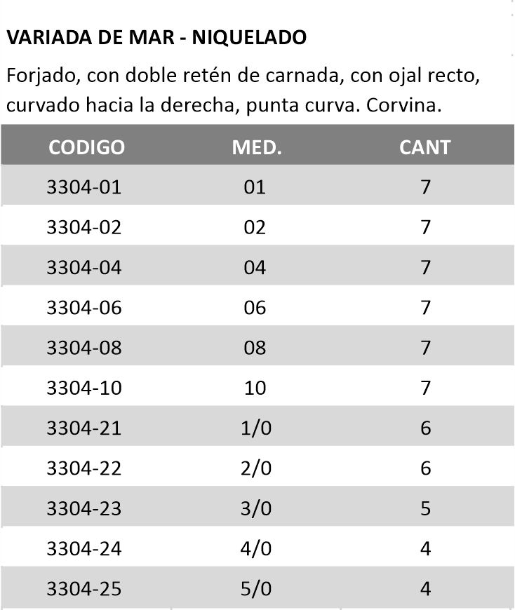 Inicio Anzuelos Variada de Mar 189N 189N Bolsitas por cantidades variables SKU: 3304 Categorías: Anzuelos, Variada de Mar Etiqueta: Niquelado Marca: Eagle Claw Productos relacionados 181Eagle ClawBronceado 254NEagle ClawNiquelado 250NEagle ClawNiquelado L2004 CircleEagle ClawNiquel/NegroPunta CirclePunta Láser